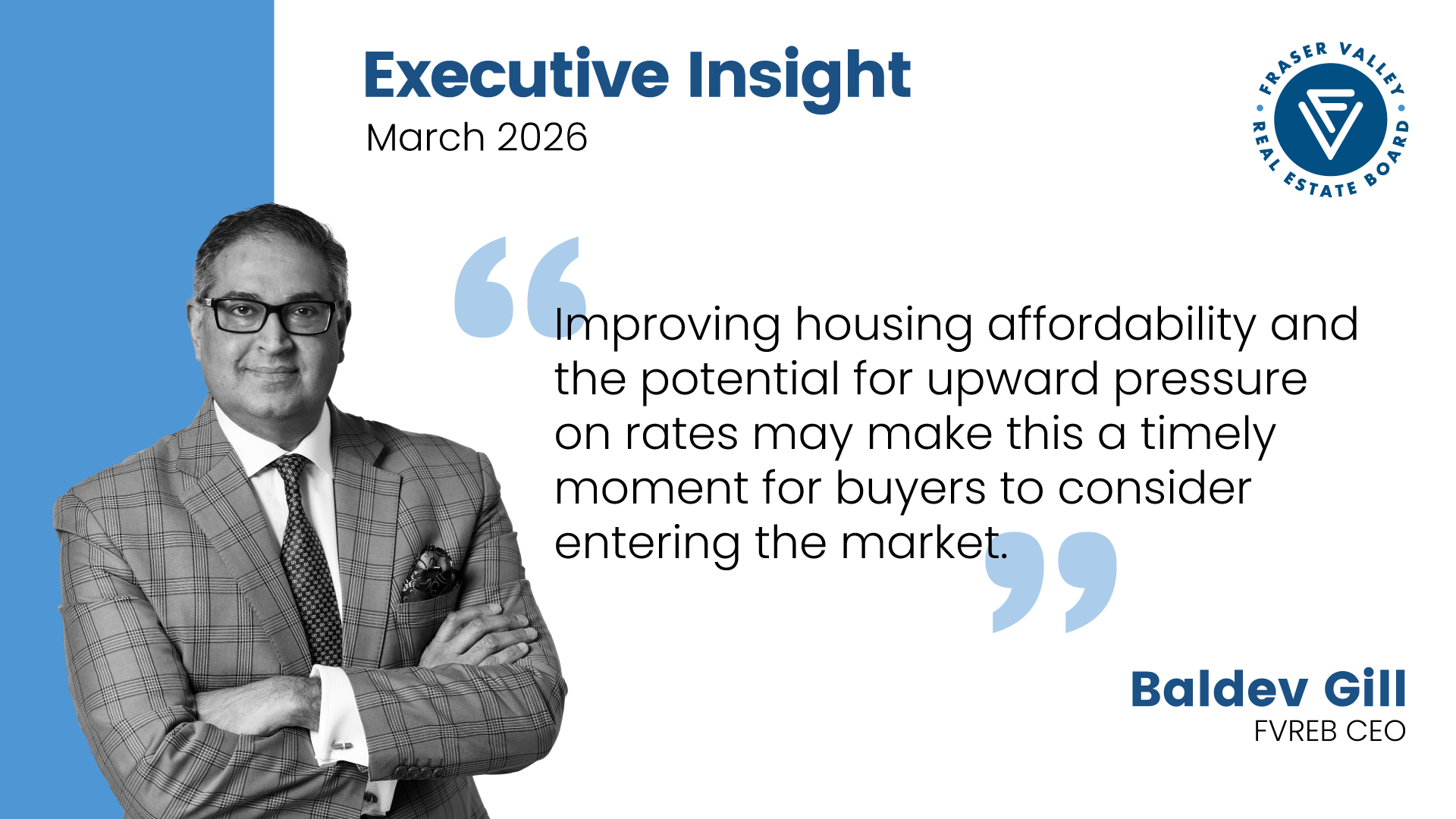 “Amid economic uncertainty and rising day-to-day costs, many households are understandably taking a more cautious approach to their finances,” said Baldev Gill, CEO of the Fraser Valley Real Estate Board. “That said, improving housing affordability and the potential for upward pressure on rates may make this a timely moment for buyers to consider entering the market.”